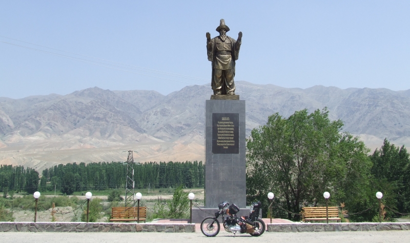 Az út hamarosan emelkedni kezdett és egy hatalmas gát mellett vitt. Úgy látszik, Kirgizisztánnak is megvan a maga Rushmore-hegye, csak itt Lenin elvtárs tekintete mered a semmibe. Amikor lefotóztam a gát melletti hegyoldalba faragott szellemi vezetőt, már sípoltak is rám a gátőrök – nyilván ismét valami hatalmas bűnt követtem el. Már futottak is a Lada Nivához és padlógázzal indultak el, gondoltam jobb lesz nekem is lépnem…”