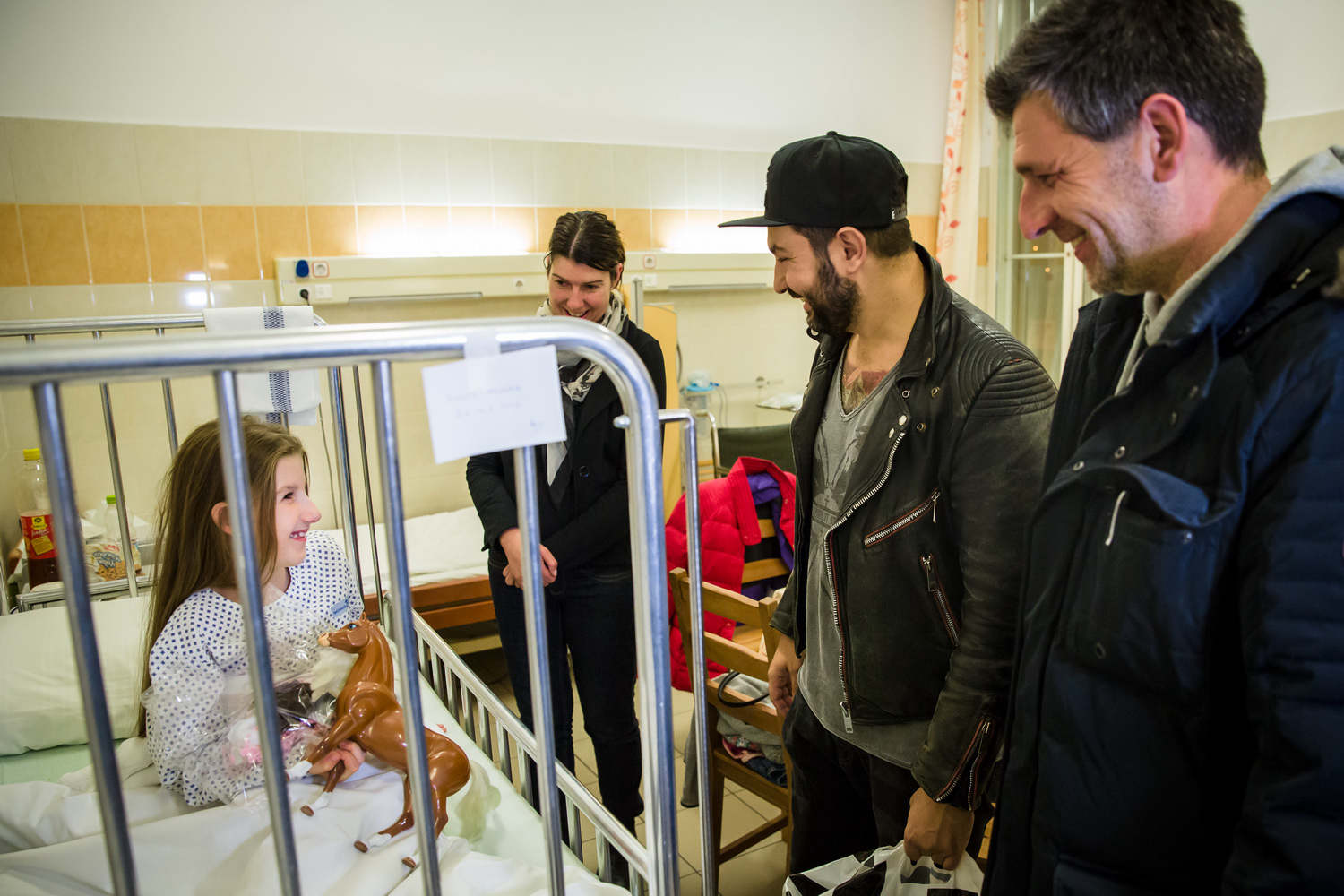 Harsányi Levi és Kárász Robi oldalán Mező Misi, valamint Kovács Áron az ajándékok mellett közös zenéléssel is segítettek egy kis vidámságot csempészni a kórház falai közé. A Mátrix Közhasznú Alapítvány Centerke Adományozó Központjának képviseletében Dudás Zsanett vette át a több tonnányi adományt, ruhaneműket, tartós élelmiszereket, játékokat és műszaki cikkeket, melyeket Silkroad Trans budaörsi telephelyéről szállítottak el a nehéz helyzetben lévő családok számára.