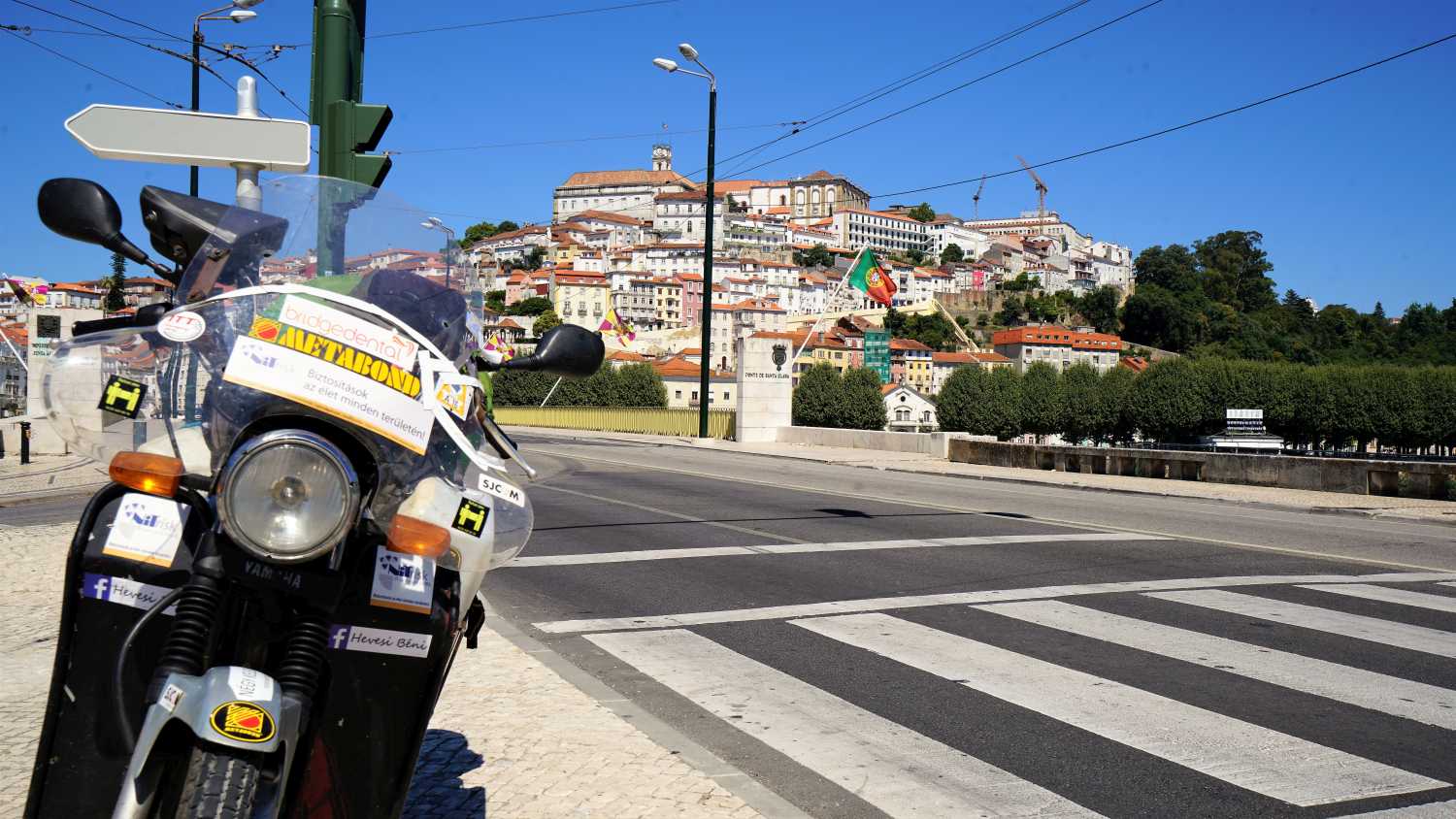 Ez a nap volt a legmelegebb az egész út során. Bátran merem állítani, hogy elviselhetetlen kánikulában motoroztam, bizonyára negyven fok felett lehetett, mert hiába fogytak egész jól a kilométerek, Coimbrában, ahogy megláttam Mondego folyót, képtelen voltam ellenállni egy fürdésnek. Kóvályogtam csak a melegben. Megnéztem a GPS-en, hol lehet a partra jutni a leggyorsabban. Egy közpark van a folyó jobb partján, a várostól nyugatra, én meg gondolkodás nélkül behajtottam a sétaútra. Megérte, tudniillik ott olyan kellemes fürdőhelyet találtam, hogy az csuda! Egy órán át ki sem jöttem a vízből. Hátrahajtottam a fejem, hogy a víz a homlokomat is ellepje, és élveztem, hogy kezd a szó szoros értelmében lehűlni a fejem. Tudtam volna még maradni, de csak az út felénél jártam, így újra nyeregbe pattantam.