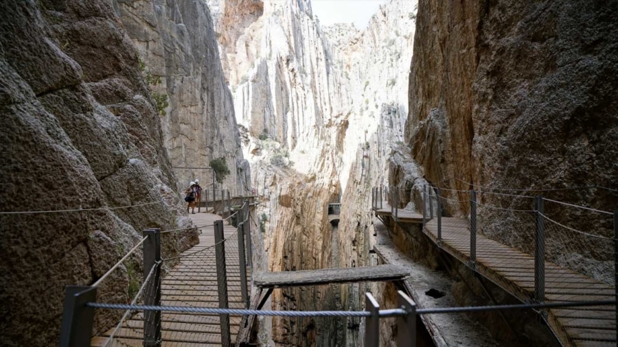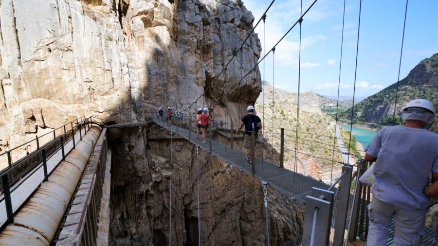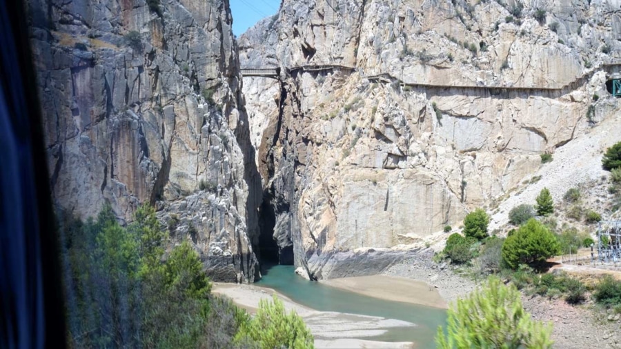 Annak idején maga a spanyol király is végigment rajta, azóta nevezik, El Caminito del Reynek, magyarul a király ösvényének vagy útjának. Ezt a félelmetes helyet már hosszú évek óta nézegettem a neten. A betonból készült függőfolyosó az elmúlt 100 évben tönkrement, sok részen leszakadt. Jó pár ember lezuhant és meghalt már itt, de emiatt még vonzóbb volt a számomra. Szerencsémre a malagai tartomány – uniós pénzekből – felújította, és belépő ellenében látogathatóvá tette. Hát ide akartam már évek óta eljutni.