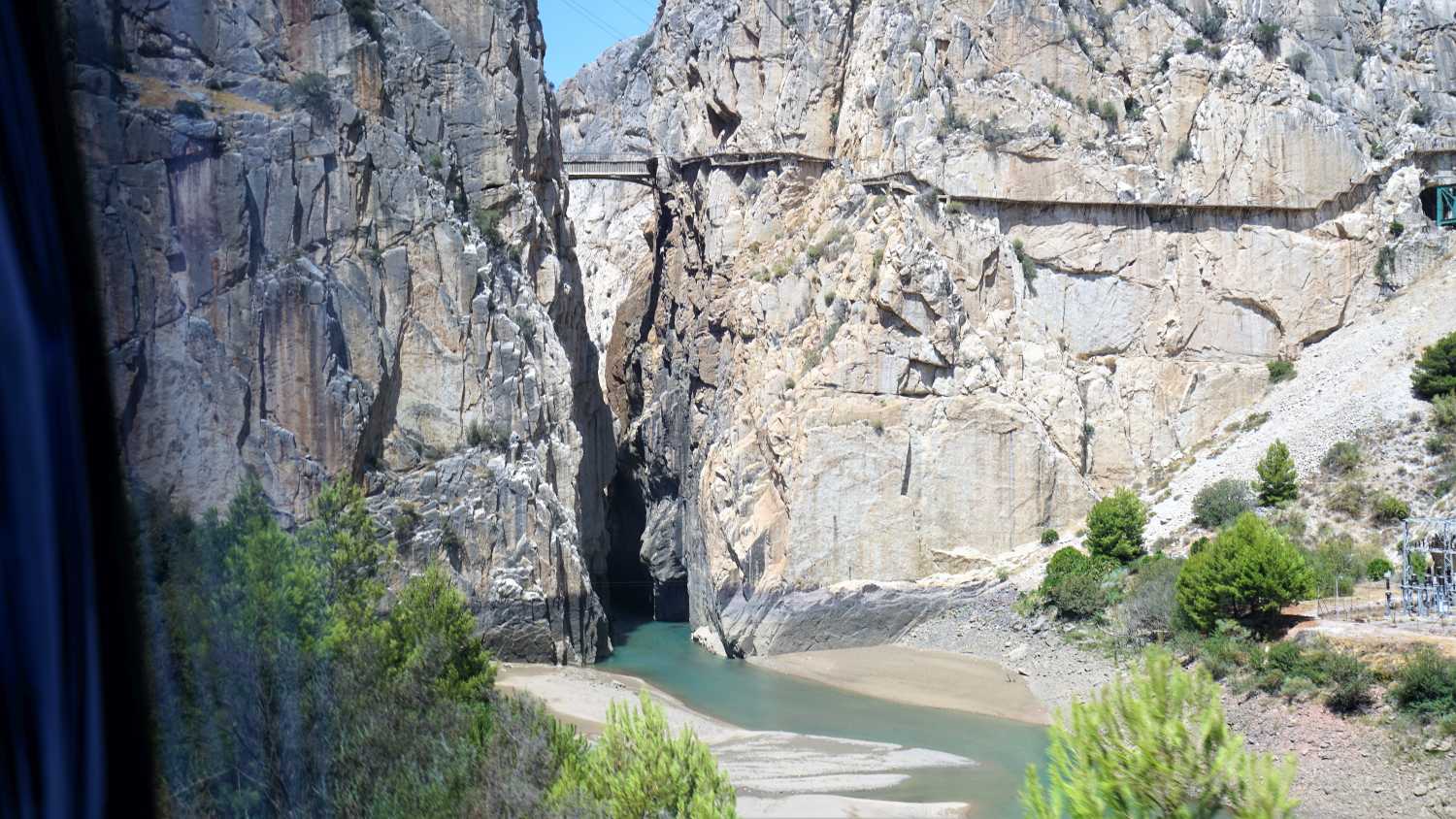 Nagyon szimpatikus a spanyolokban, hogy nem ciki nekik, ha valami érdekli őket. Márpedig elég kíváncsi népség, és ez jó. Eddig itt bámulták meg és járták legtöbbször körbe a kis csacsit. A szakadék és környéke megtekintése után tovább indultam utazásom eredeti céljához. El Chorro, ahol a híres El Camino del Rey található, már csak 60-70 kilométerre volt. Igazi andalúziai tájon motoroztam. Két magas hegy között, egy aranyló völgyben, tikkasztó hőségben. Régen vártam már erre az érzésre, és nem is csalódtam – fantasztikus élmény.