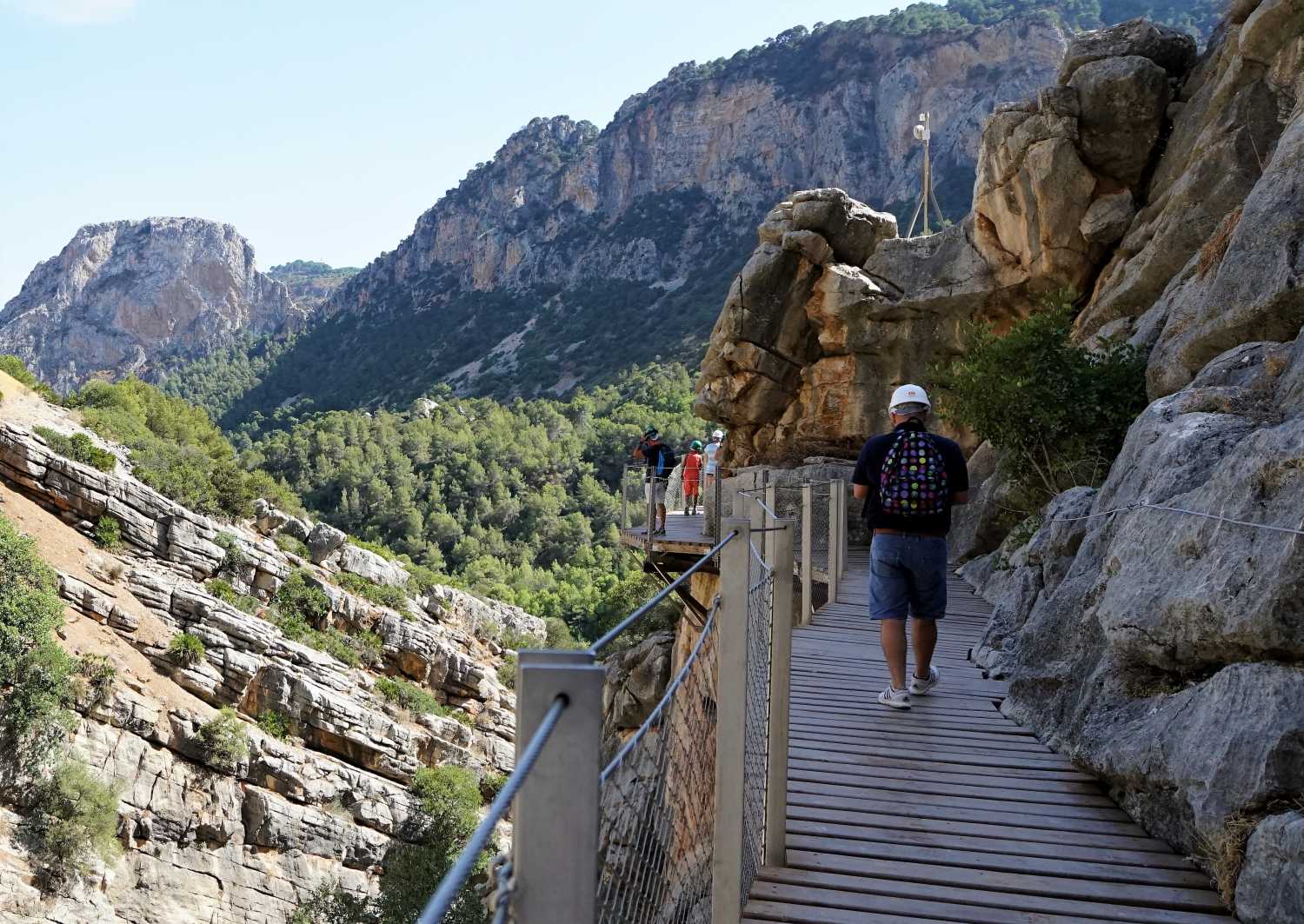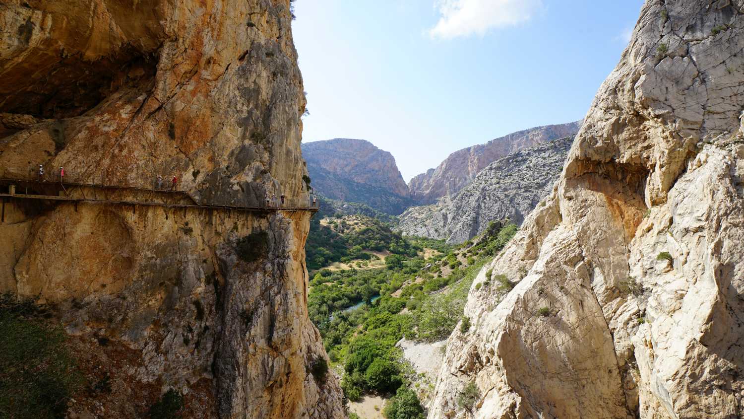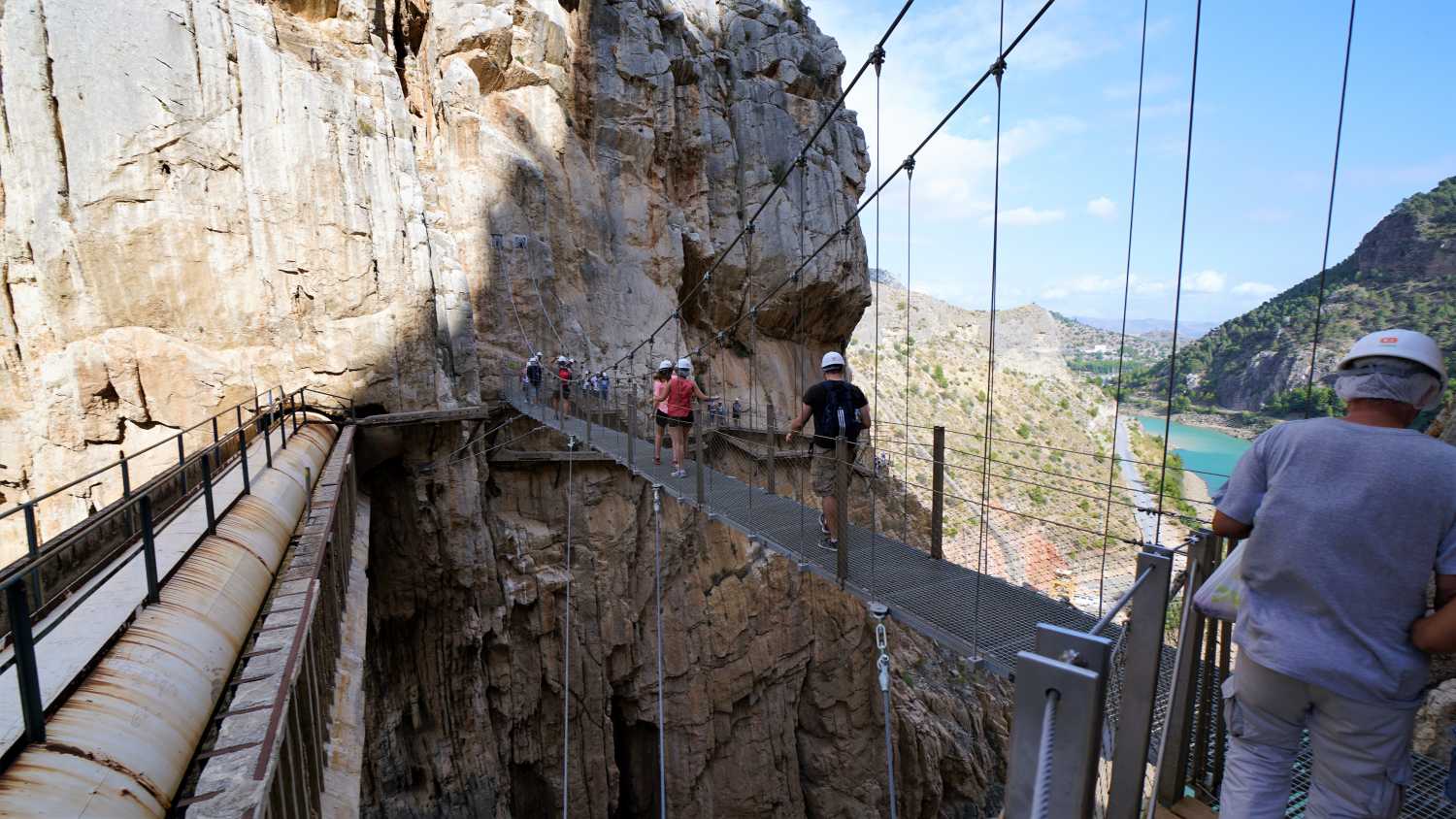 Ampert őrlő szélmalmokra bukkantam, de esküdni mernék, hogy felbukkant egy hórihorgas fazon is szürke gebén, lándzsával a kezében, és egy köpcös alak ügetett mellette, szamárháton… A két alak körvonalai lassan elvesztek a délibáb határán, én meg széles vigyorral az arcomon poroszkáltam tovább a cél felé. Az El Chorro kanyonban található a világ egyik legizgalmasabb ösvénye. Az 1900-as évek elején, két vízeséshez építettek erőművet, és a munkások, valamint a későbbi személyzet számára, építettek egy 2,9 kilométer hosszú függőfolyosót, mégpedig száz méteres magasságban a kanyon falára.