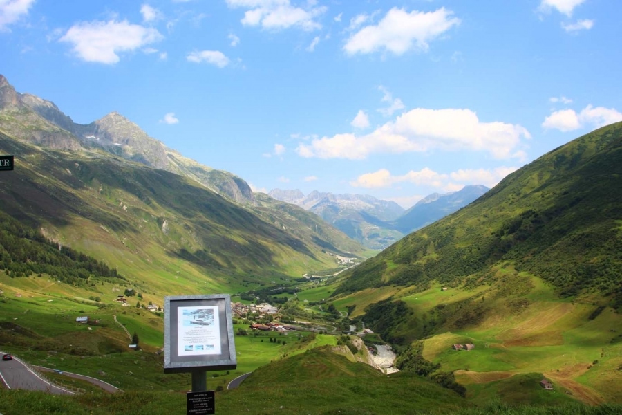 Öt perc után már el is értük a határt, egészen pontosan Davos felé vettük az irányt a Füela-Pass érintésével – leírhatatlanul szép tájon motoroztunk végig. Davosba érve megszomjaztak a motorok, találtunk is egy kutat, sajnos automata volt, nálunk viszont csak nagy címletű frank, ami miatt nem tudtunk tankolni, mivel ezek a kutak csak egy papírt adnak vissza… Pár perces keresgélés után végre találtunk egy normál benzinkutat, s egy kicsi pihenést követően újra nyeregbe pattantunk. A 28-as úton mentünk egészen Landquart-ig, innen a 313 és a 19-esen haladva elértük az Oberalp-Passt. Sajnos itt sokat nem tudtunk időzni, mert kis késésben voltunk, így a Furkapasson megálltunk párat fényképezni, megörökíteni a magával ragadó tájat. Innen Guttanen felé mentünk a Grimsel-Passon keresztül.