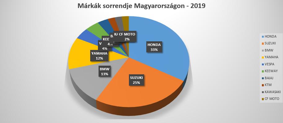 Messze kiemelkedik a mezőnyből a piac harmadát uraló Honda, nyomában a Suzukival és a BMW-vel