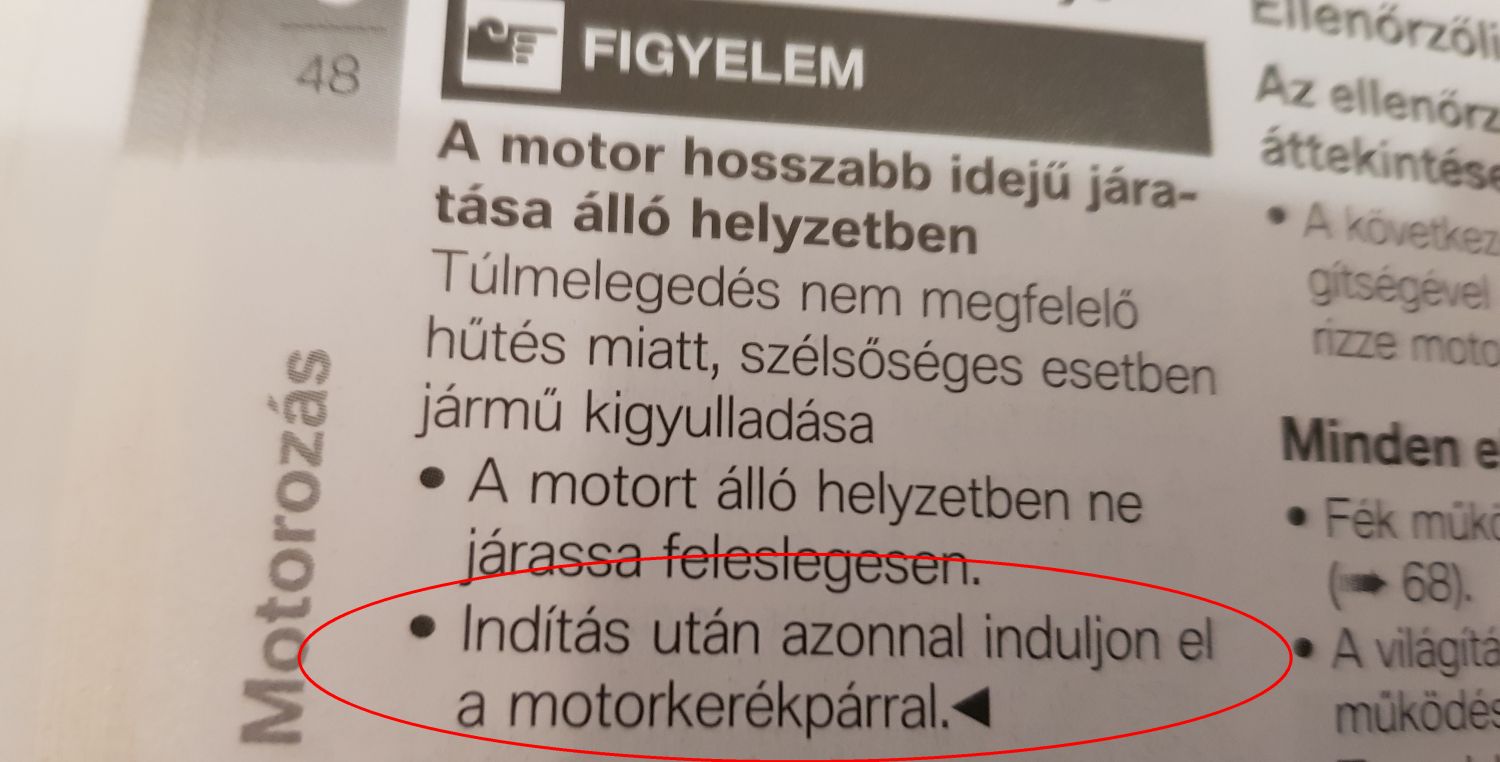 Mielőtt valaki nekünk esne, hogy miért akarunk rosszat, gyorsan szögezzük le: most is a két véglet között találjuk az igazságot. Nem érdemes céltalanul indítgatni, miként nem szabad rögtön „nyélen” elindulni sem – egyik se tesz jót a motornak. A legjobb, ahogy egyébként oktatják is a sulikban, hogy néhány másodperc járatás után elindulunk vele, majd kis gázon, alacsony fordulatszámon haladva melegítjük, amíg el nem éri az üzemi hőmérsékletet.