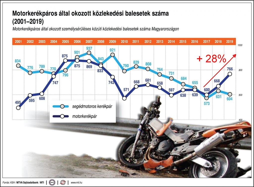 Az utóbbi két-három évben kétszer olyan gyorsan nőtt az okozott balesetek száma, mint a motoroké – ez sajnos nem jó hír nekünk, motorosoknak, de kár is lenne titkolni. Az okokat keresve mondhatjuk, hogy egyre több a jármű és egyre gyorsabbak az autók, motorok, de nem fejlődött ennyit a technika két év alatt, hogy ráfoghassuk a 24%-os növekedést.