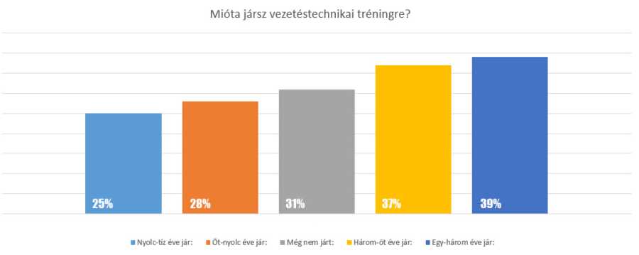 Évről-évre egyre nagyobb az érdeklődés a vezetéstechnikai tréningek iránt – a motorosok több mint kétharmada járt már ilyen képzésen. Biztató, hogy majdnem negyven százalékuk az utóbbi 1-3 évben is volt oktatáson