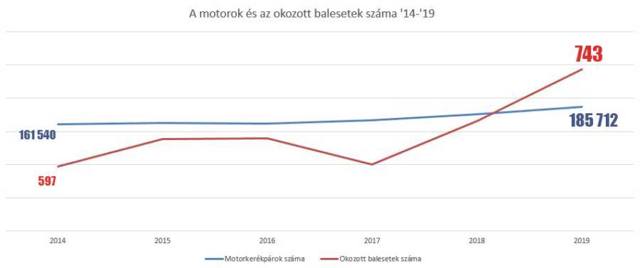 Nos, tisztán látható, hogy évről-évre nő az üzemanyageladás Magyarországon, a motorok száma is növekszik, azaz többet tankolunk és motorozunk. Ezzel akár le is zárhatnánk a témát, azonban 2017 és 2019 között „csak” 10,6%-kal nőtt a motorok mennyisége és 23,8-cal a baleseteké, vagyis önmagában nem ok a durva számokra.