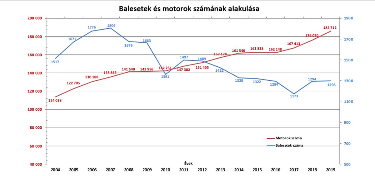Noha sokszor halljuk ezt az ürügyet, egy perc netes kereséssel kiderül, hogy teljes butaság. A regisztrált motorok mennyisége csak 2015 és 2016 között csökkent 680 darabbal, amikor a személysérüléses balesetek száma pont hogy nőtt, vagyis megdőlt, hogy a motorok számának növekedése/csökkenése közvetlen kapcsolatban van a balesetek számával.