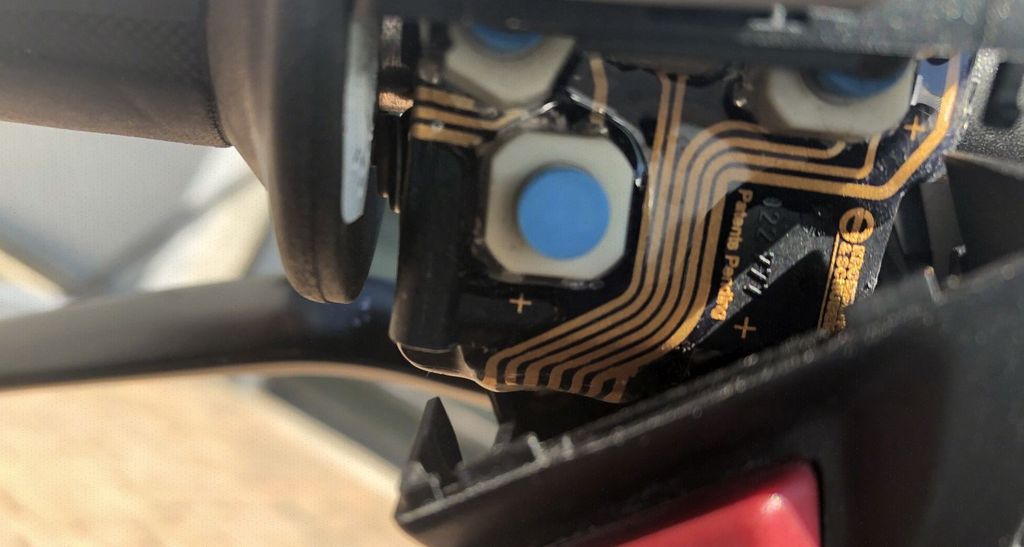 Az idő sajnos nem igazolta ezt a technológiát. Bár a mikrokapcsolók szinte elpusztíthatatlanok a méretcsökkenés ellenére, a vékony áramvezető réteg könnyen sérül a hőtágulás és rezgések együttes hatására, különösen a kapcsolók lábainak környékén. Mivel ezek sorba vannak kötve, egy kapcsoló kontakthibája akár a teljes kapcsoló működését blokkolhatja, illetve a jobboldali kapcsolónál ilyen esetben a motor indíthatatlanná válhat vagy leállhat, tehát nem érdemes elhanyagolni. Az egység javításával több házi módszerrel is próbálkoztak a fórumlakók, ám sem a hőkezelés, sem a nyomtatott áramkört megkerülő vezeték(ek) bekötése nem hozott tartós megoldást. Nincs mese: ez már nem az a szint, ahol két fillérből megmókolhatod a gyári technikát…