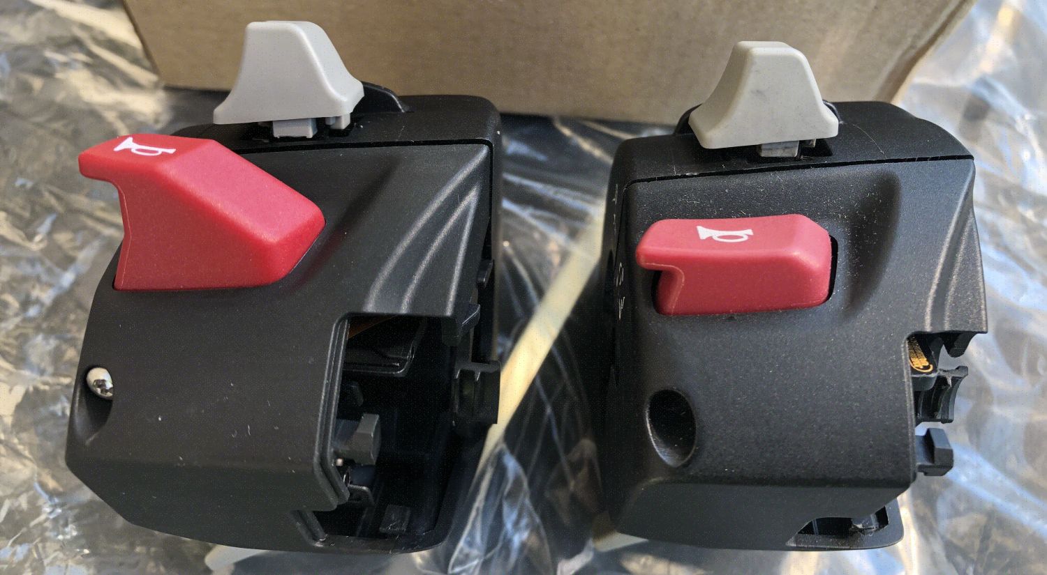 Ezek felderítése után egyértelművé vált az új kapcsoló beszerzése. Cribmoto.hu-tól Bence segített ebben, illetve már új technológiával készült kapcsoló felszerelésében. Itt ért a meglepetés (öröm az ürömben), nem csak a megbízhatóságon javítottak, de a kürtgomb is nagyobb lett. Ennek köszönhetően már nem kell fogást változtatni a markolaton a duda használatához, rövidebb ujjal is lazán elérhető a módosított kürtgomb.