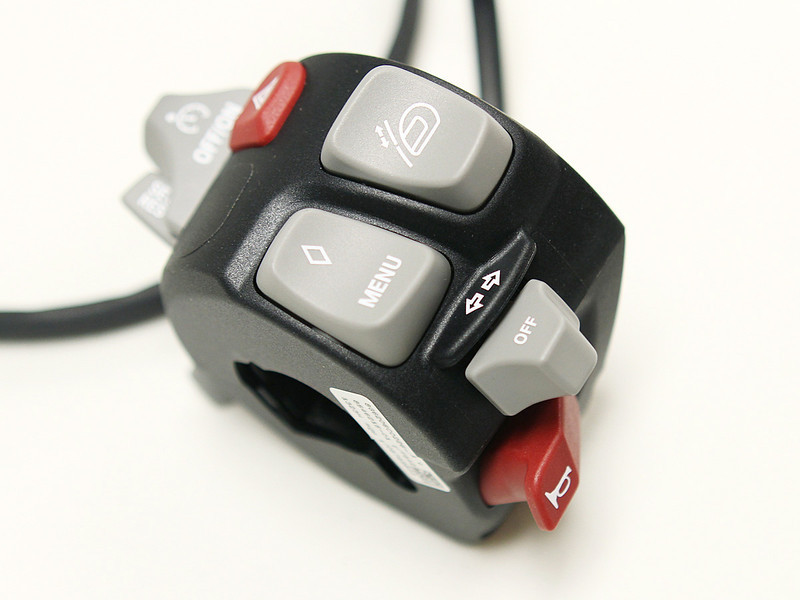 A 2008 előtti modelleken mai szemmel felfoghatatlanul robusztus kapcsolókat találunk. Alább egy 2001-es évjáratú BMW R 1150 RT kapcsolószektora látható.