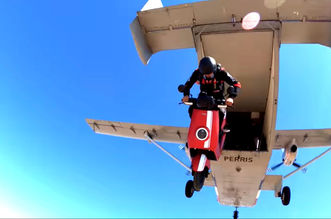 Bevállalós mutatvány: ejtőernyős ugrás robogóval (Videó forrása: Facebook) ...