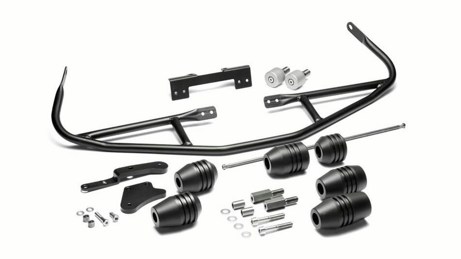 Lényegében ezerféle egyszerű és nagyszerű praktika létezik, mi most a két legnépszerűbbet vettük elő Az első, ha bukókeretet, bukócsövet szerelünk fel a vázra – a legtöbb új túramotorhoz ez eleve megrendelhető vásárláskor. Ezen kívül böngészhetünk utángyártott alkatrészek listáján is, temérdek típushoz gyártanak a legkülönfélébb anyagokból ilyen csőszerkezeteket. Az F 750 GS esetében a GIVI TN5127 bukócső 80 590 Ft .A második megoldás a különböző bukógombák, illetve deknivédők felszerelése. Ez nem foglal annyi helyet, mint a bukócső, ezért aztán könnyebb, és az esztétikusabb darabok sem kerülnek annyiba, mint egy bukókeret.