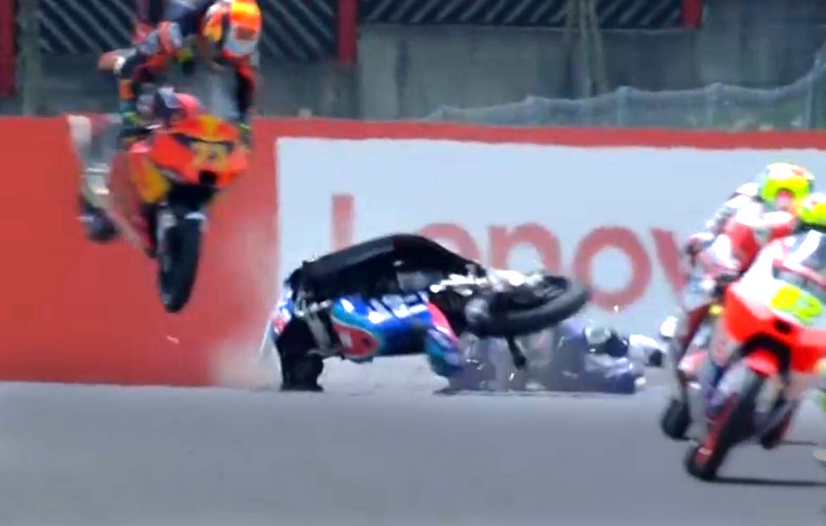 Tragikus bukás a Moto3-ban: Dupasquier és Sasaki