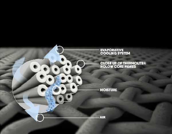 Ezért aztán különböző módon készülnek az egyes rétegek, élen a bőrrel érintkező alapréteggel, melynek feladata az izzadtság elvezetése és a komfortérzet biztosítása. Ezzel szemben a felette soron következő rétegek elsősorban szigetelnek, azaz „visszaverik” az alaprétegen átjutó testhőt, és nem engedik kihűlni a motorost. Hogy ne essen csapdába az izzadtság a két anyag között, a cég előszeretettel alkalmazza a már említett „Defender” szélálló anyagot középső rétegként, egyszerre biztosítva a szellőzést és az izzadtság elpárologtatását. Egyebek mellett ilyen középső réteget találunk a vállalat Tornado nadrágjában és felsőjében is, míg a ruha alapja a kiváló hőszigetelő képességű, mégis könnyű Thermolite polárszövet.
