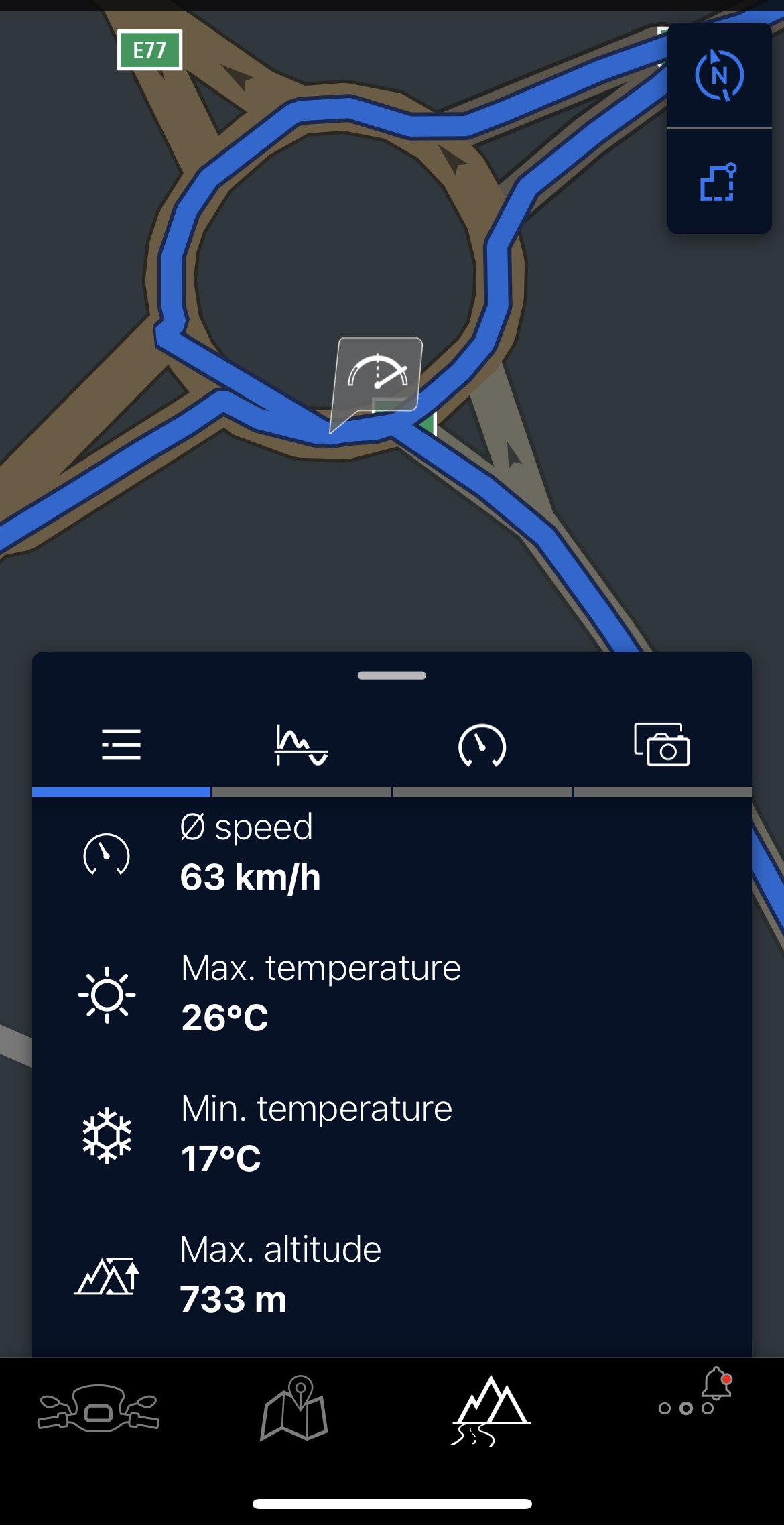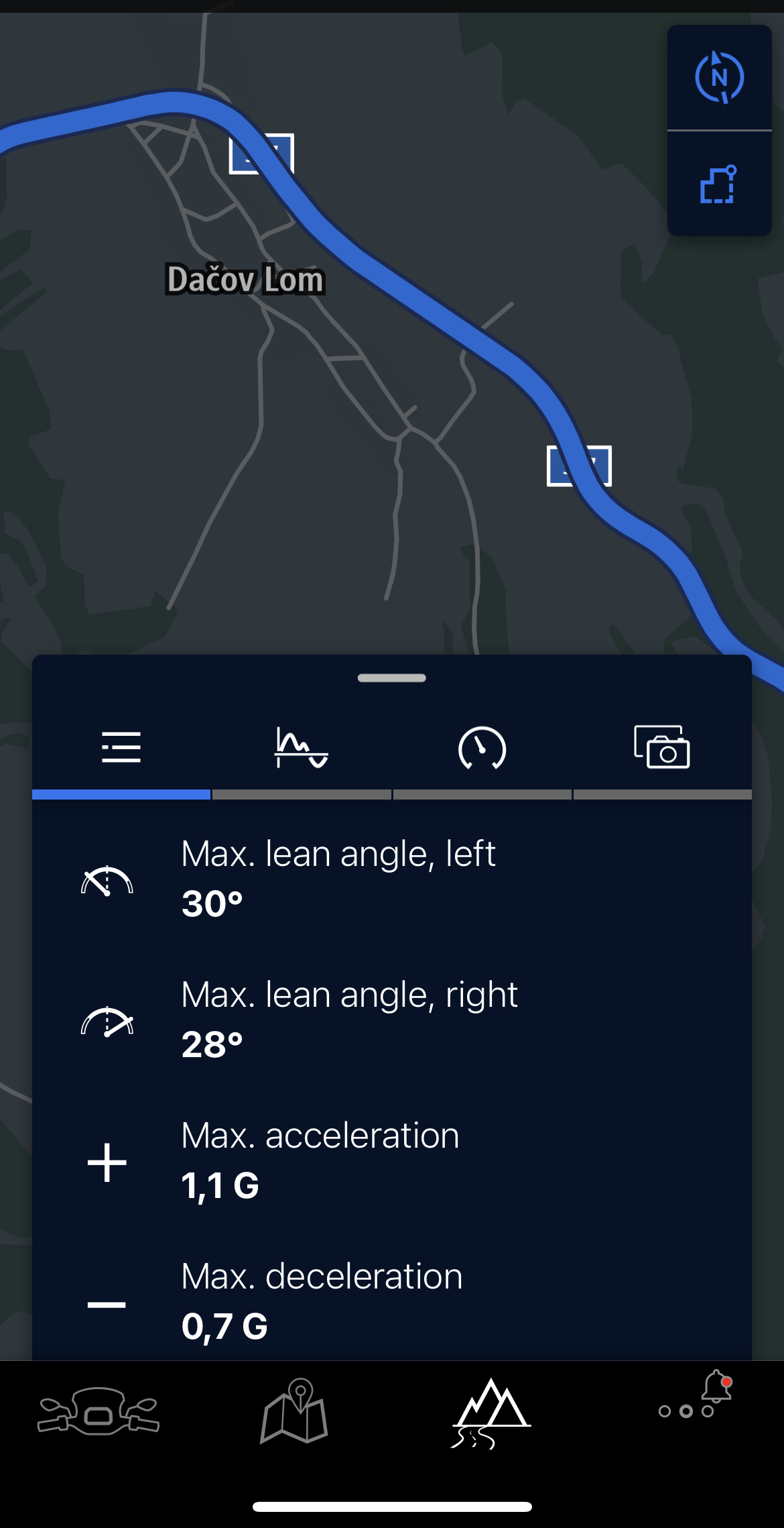 Navigációként offline térképeket használ, nem kell fizetni semmiért, és automatikusan rögzíti az út minden paraméterét. Utólag visszanézhető, hol döntöttem a legnagyobbat jobbra és balra, mennyi volt a legnagyobb lassulási vagy gyorsulási erő, amit mért, hol kapcsolt be az ABS vagy a nyomatékhatároló. Ráadásul egyszerű az első belépés is, hiszen mindössze annyi a dolgod, hogy felviszed a motorod az alkalmazásba, és amint rögzítetted, már indulhat is a kaland.