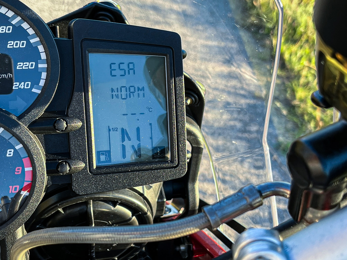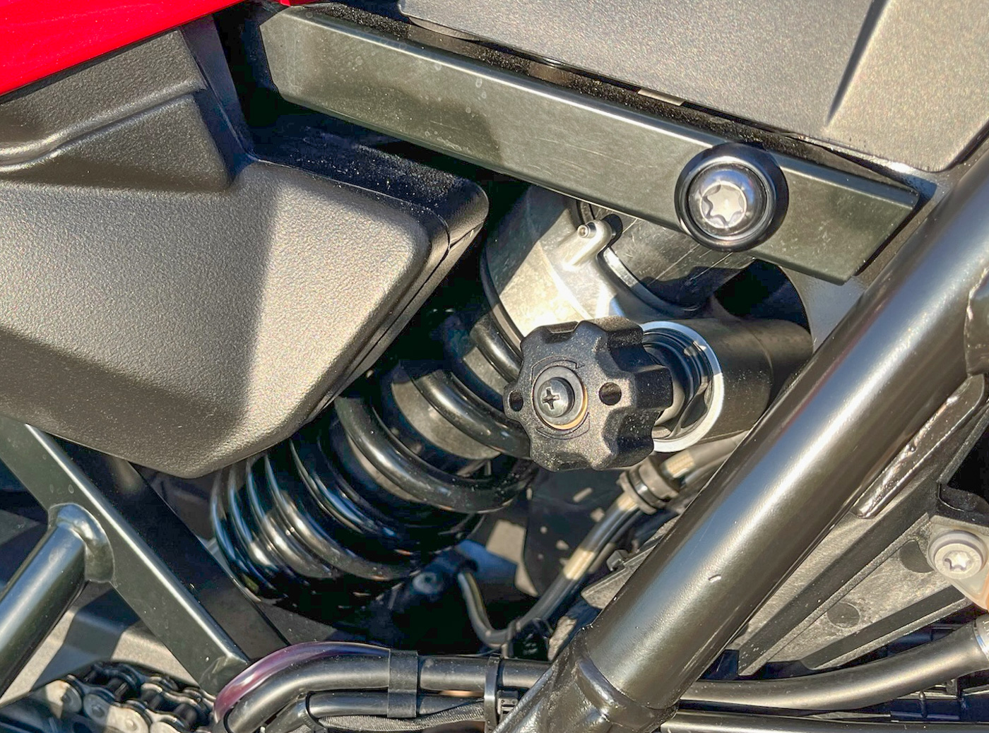 Magasságcsökkentéssel az ESA a további csillapítási jellemzők beállítását ugyanúgy kezeli és engedélyezi a csökkentett rugóút mellett. A magasságcsökkentő készlet telepítésével a kis piros GS ülésmagassága 40 milliméterrel csökkent, miközben az alacsonyabb súlyponttal a motor még kezesebbé és stabilabbá vált. A lábtartó még éppen jó, de lehet ez hosszabb távon rövidebbre lesz cserélve a biztonság kedvéért. Az ülésmagasság közel a Motron Vizionunkkal lett azonos, és a kezelhetősége is meglehetősen játékmotorossá vált.