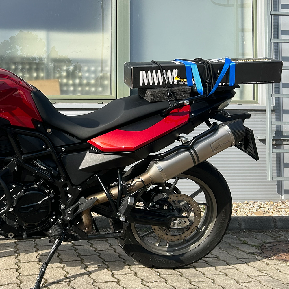 A Touratech Suspension magasságcsökkentő készletének köszönhetően még egy 168 centiméter magas hölgy is biztonságosan elérheti a talajt mindkét lábával. A kivitelezési minőség a Hyperpronak köszönhetően a gyári minőséggel megegyező, sőt pontosan ellenőrzött és kipróbált keménységű első rugókkal és adott mennyiségű és keménységű teleszkópolajjal. Túra közben nem léphet fel váratlan viselkedés, az átalakítás miatt nem veszíthet tapadást a motor, erre garancia a cég fejlesztési és minőségellenőrzési részlege.