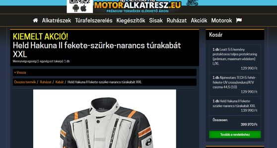 Szintén az üzlettel kapcsolatos hír, hogy a motorosok visszajelzései alapján immáron nem ürül ki a virtuális kosár 20-30 perc inaktivitás után, hanem bármikor elérhető marad, sőt a mobilon, tableten összeválogatott árukat is láthatod a számítógépeden a kosárikonra kattintva, és persze vice versa.