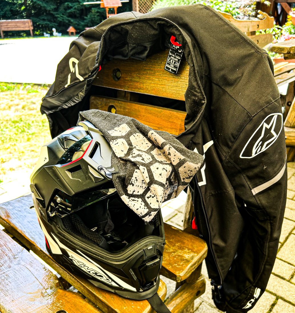 Jártál már így? Minden adott egy tökéletes naphoz, mégis valahol megtörik a lendület. Nézem a kabátot a széken, 3 éve jóban-rosszban túléltünk együtt nyarakat és ciklonokat, de most nem akarom felvenni, nem esik jól továbbmenni. Ez a T-SP 1 típusú kabát 4 évszakra van tervezve, nagyon komfortos, a béléssel tényleg használható télen is, csak aláöltözet kérdése és szellőzése is jó. Úgy 30 fokig. Most viszont 39 fok van, és már csak haza szeretnék jutni, de valahogy nem akaródzik motorra ülni…