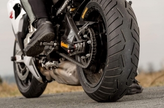 Az ABS szinte munka nélkül marad, miként ez az első köpeny, mely tulajdonképpen feleslegessé teszi a Kawa - nem létező - kipörgésgátlóját... ...